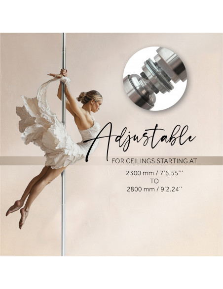LUPIT Pole Classic G2 tanečná tyč z nehrdzavejúcej ocele je odnímateľná a je ľahké ju nainštalovať/odstrániť jednou osobou za pár minút. Priemer 42mm a 45mm.