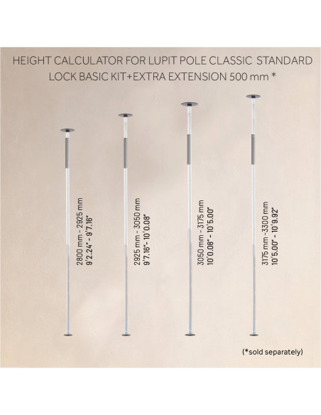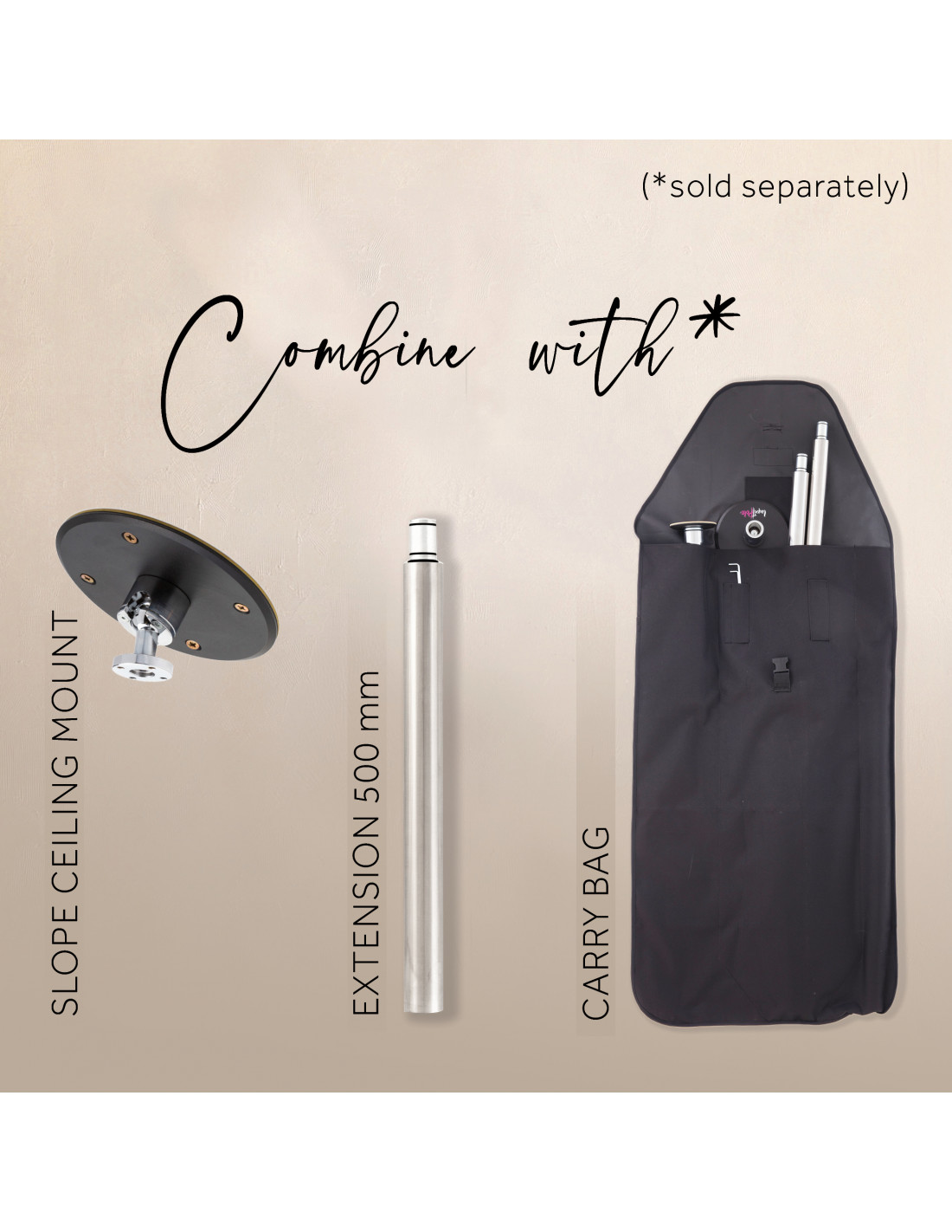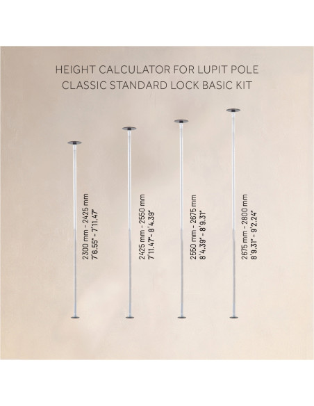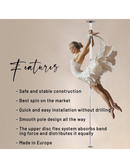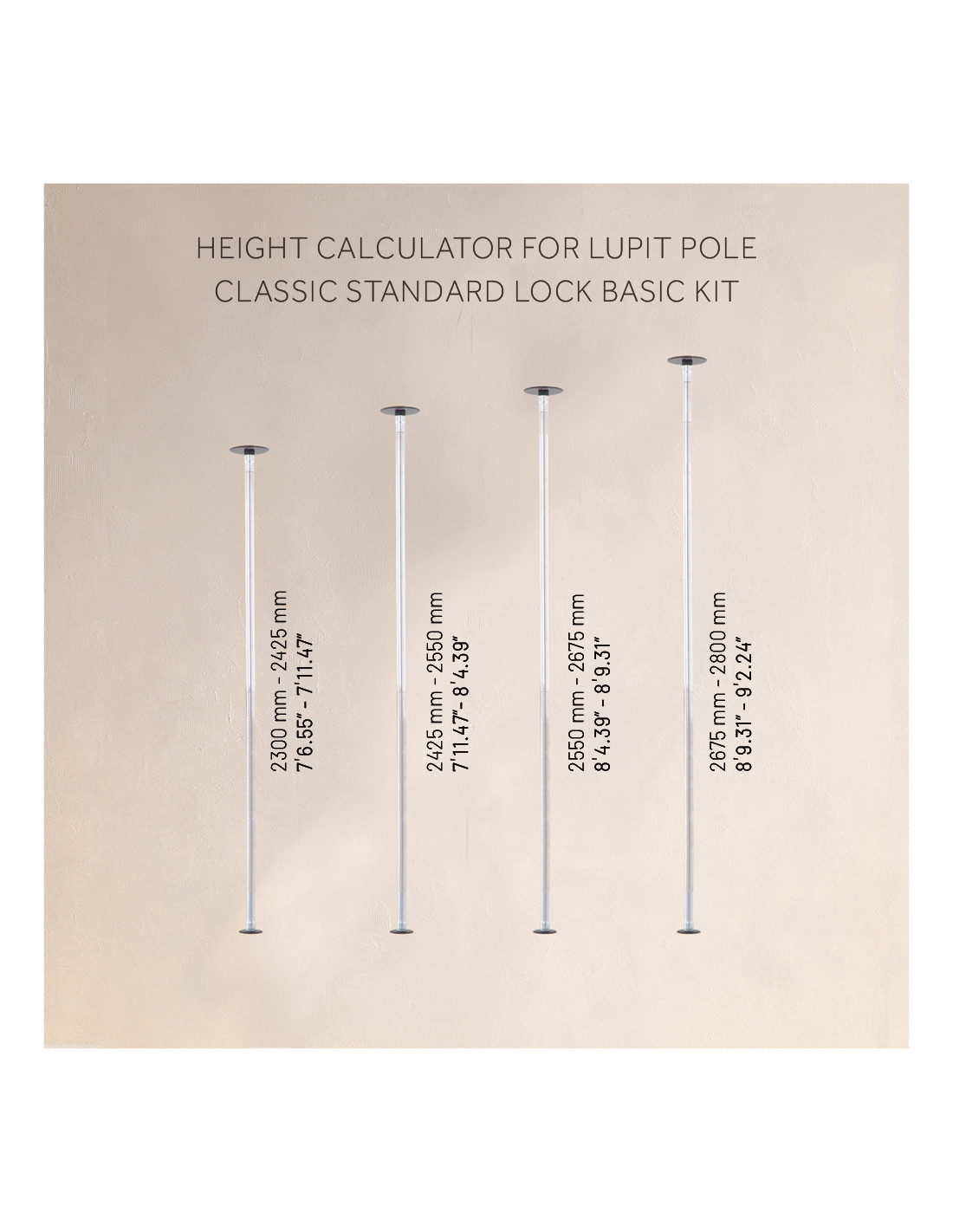Lupit Pole tyč na pole dance Classic je odnímateľná a rozkladacia tanečná tyč navrhnutá pre rýchlu inštaláciu bez vŕtania. Kvalitný gumový povrch, unikátny systém ohybu horného disku Flex System a patentovaná drážka Safety Block zaisťujú tanečnici maximálnu bezpečnosť. Tanečná tyč je vyrobená z vysoko kvalitnej a vysokoleštenej nerezovej ocele, vďaka čomu je antialergénna. Povrch tyče je úplne hladký po celej dĺžke. Je bezpečná a spoľahlivá, má výbornú rotáciu a optimálnu priľnavosť. Pole dance tyč v základnom balení je vhodná do priestoru s max. výškou stropu 2800mm. V prípade vyššieho stropu je potrebné dokúpiť predĺženie. Nainštalovať ju zvládne aj jedna osoba a to bez potreby vŕtania.