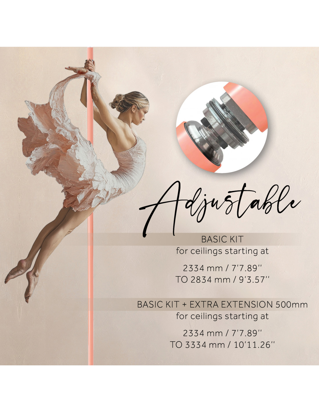 Práškovo lakovaná tyč je vhodná pre ľudí, ktorí majú ťažkosti s úchopom kovových tyčí. Lakovaná tyč má vysokú priľnavosť hoci jej povrch je veľmi hladký. Základná súprava je vhodná do miestnosti s výškou stropu minimálne od 2334 mm do výšky maximálne 2834 mm. Do priestoru s vyšším stropom je potrebné dokúpiť predĺženie.