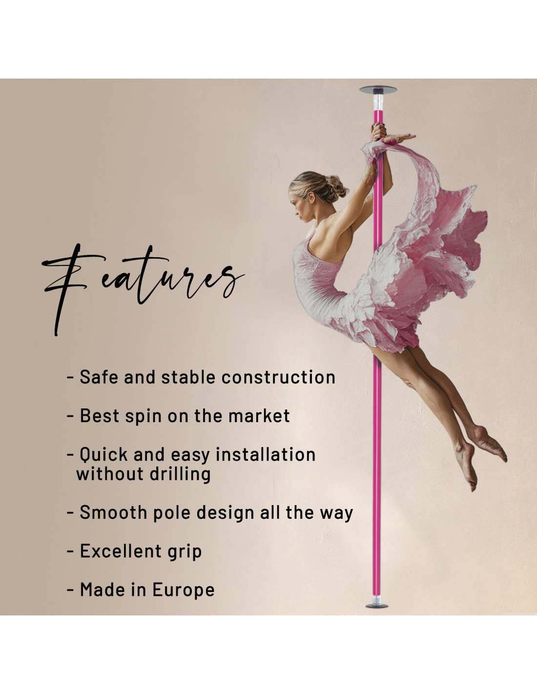 Statická aj spinová rozkladacia tanečná tyč v jednom. Ideálna voľba ak plánujete veľa cvičiť v domácom prostredí. Má vynikajúcu priľnavosť a veľmi hladkú textúru. Jednoduchá inštalácia do pár minút.